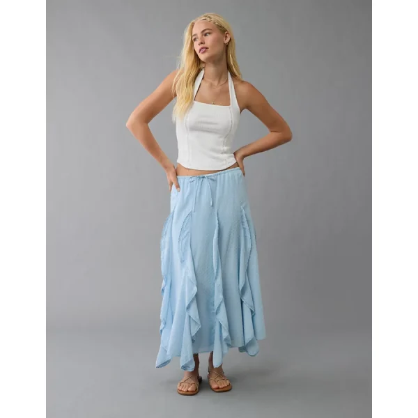 AE High-Waisted Cascade Ruffle Maxi Skirt – Light Blue