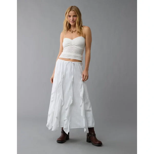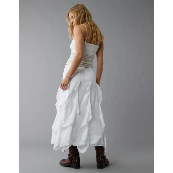 AE High-Waisted Cascade Ruffle Maxi Skirt – White