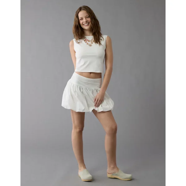 AE High-Waisted Smocked Bubble Skirt – White