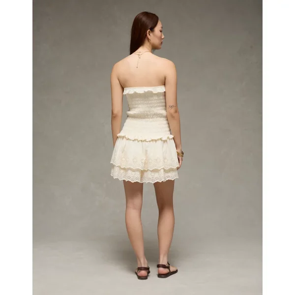 AE Strapless Smocked Ruffle Drop Waist Mini Dress – Cream