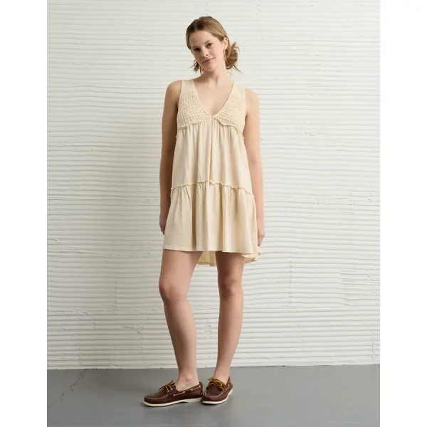 AE Sunchaser Knit V-Neck Crochet Mini Dress – Cream