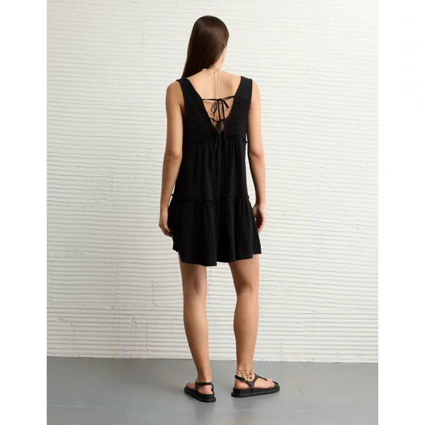 AE Strapless Ruffle Tiered Mini Dress – Black