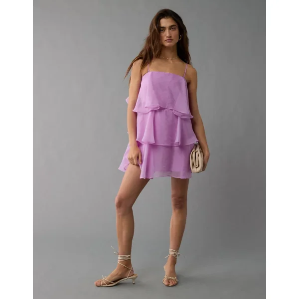 AE Strapless Ruffle Tiered Mini Dress – Berry