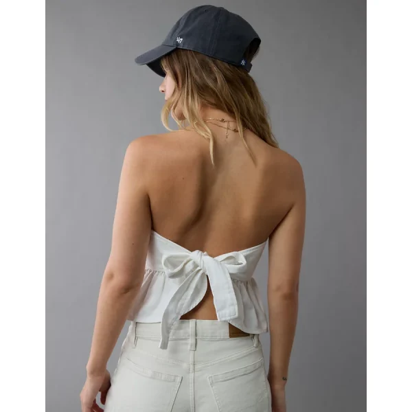 Lightweight yet structured cotton denimStraplessTie backBabydoll silhouette 90% Cotton, 10% Recycled CottonMachine washImported Babydoll silhouetteClassic lengthStrapless