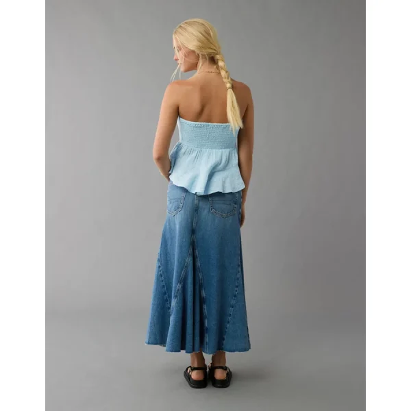 AE Handkerchief Hem Smocked Babydoll Tube Top – Black