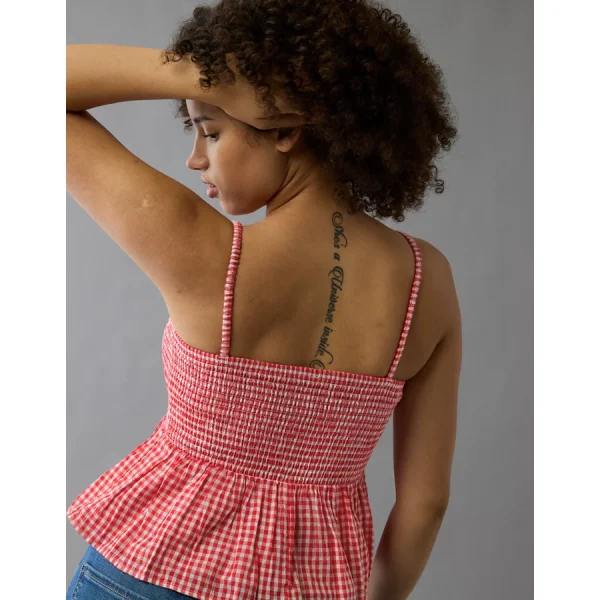 AE Smocked Gingham Babydoll Cami – Red