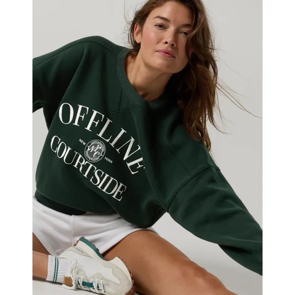 OFFLINE By Aerie Cloud Fleece Classic Crewneck Sweatshirt – Deep Forest Green