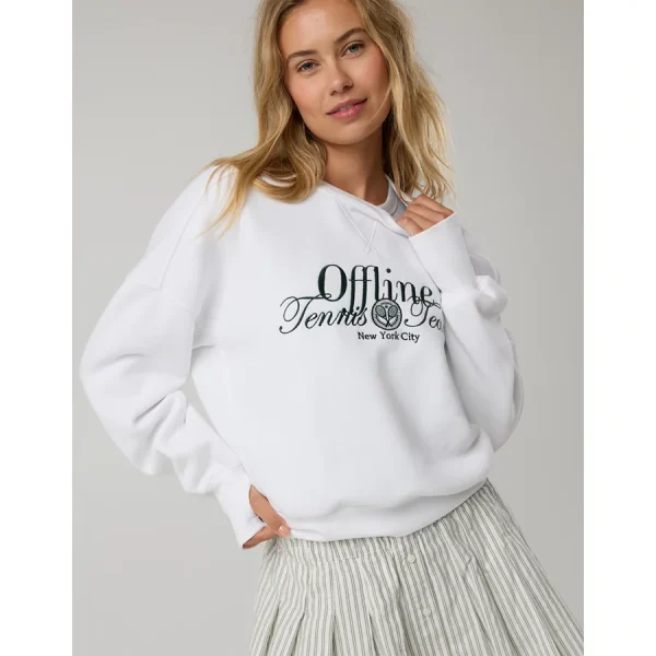 OFFLINE By Aerie Cloud Fleece Classic Crewneck Sweatshirt – Air White