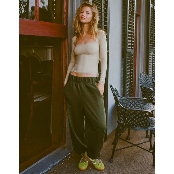 SMOOTHEZ Square Neck Long Sleeve T-Shirt – Rugged Green