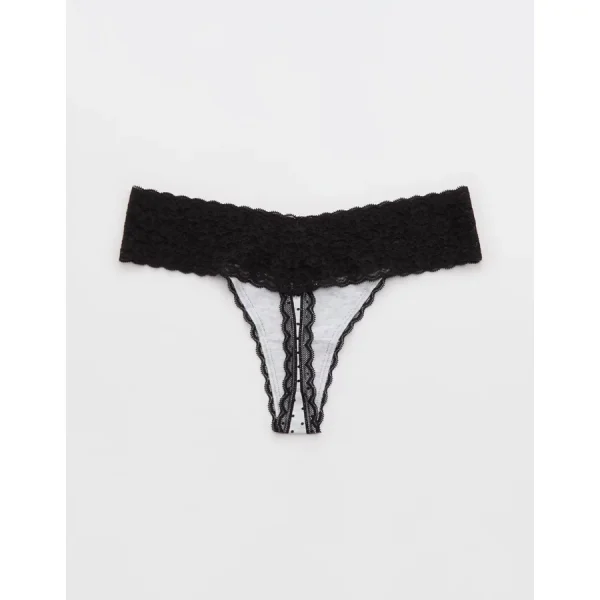 Superchill Vintage Lace Cotton Thong Underwear – True Black
