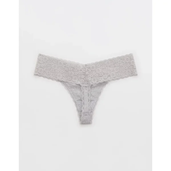 Superchill Vintage Lace Cotton Thong Underwear – Medium Heather Gray
