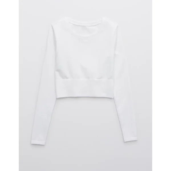 OFFLINE By Aerie Sidewalk Seamless Long Sleeve Cropped T-Shirt – White