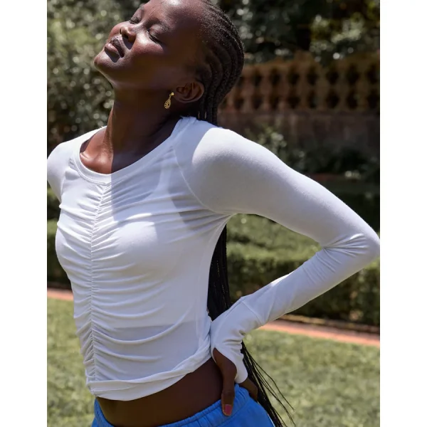OFFLINE By Aerie Thumbs Up Ruched Long Sleeve T-Shirt – White