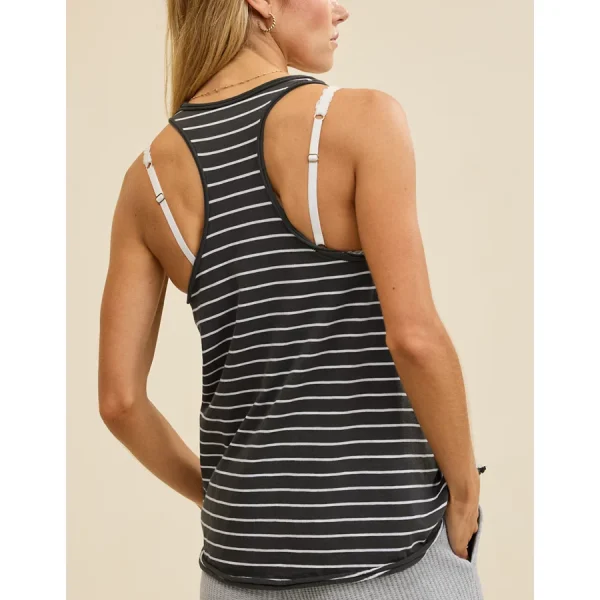 Ribbed, stretchy cotton fabricHigh neck with contrast trimTuckable raw edge hem Special feature to conceal bra strapsAccessibility deets: tagless label
