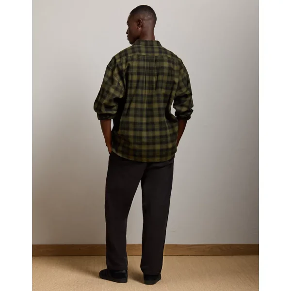 The quintessential workshirt cut in heavyweight flannel, ready to layer over your favorite AE77 teesWoven plaid fabric with a super