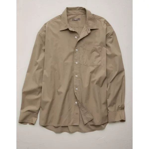 AE77 Premium Relaxed Striped Poplin Button-Up Shirt – Khaki