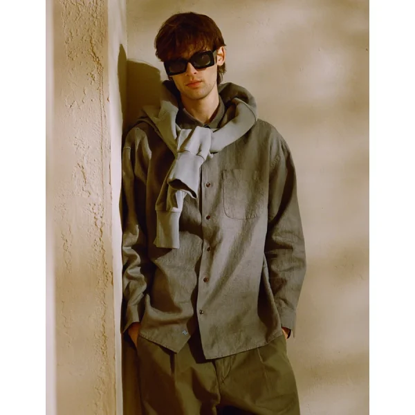 Lightweight summer linenDouble pleats at sleeve cuffChest patch pocketShirttail hem 100% LinenMachine washImported Oversized and relaxed throughoutLong sleeves