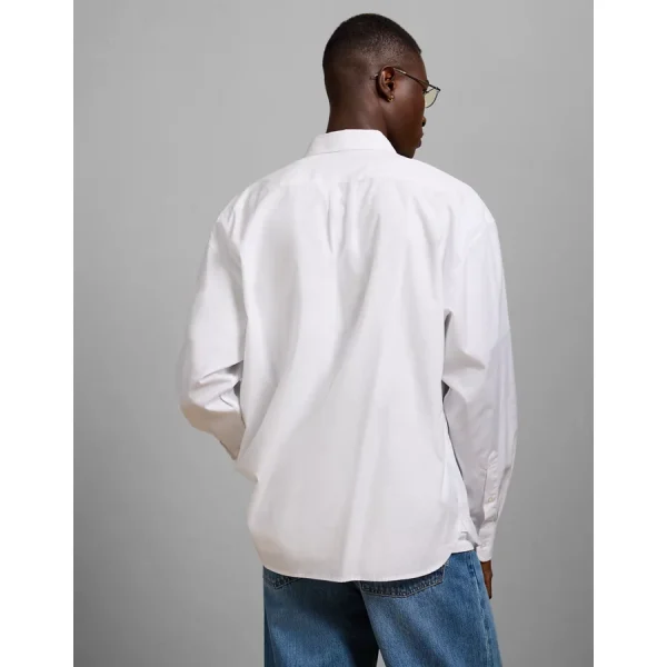 AE77 Premium Relaxed Striped Poplin Button-Up Shirt – White