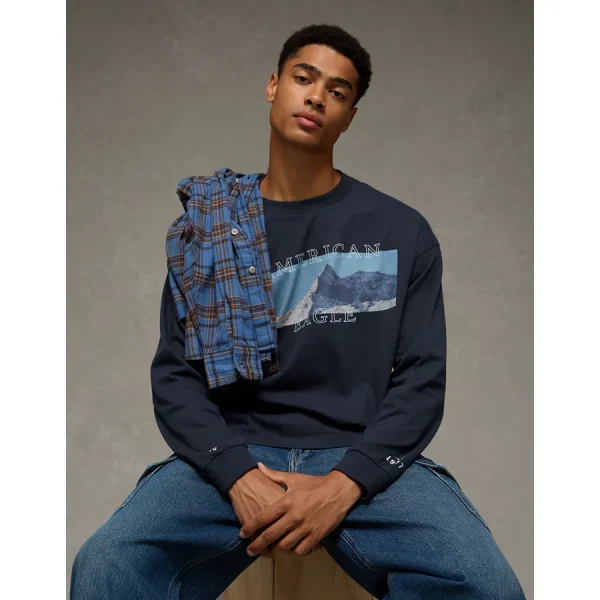 AE Boxy Long Sleeve Destination Graphic T-Shirt – Navy