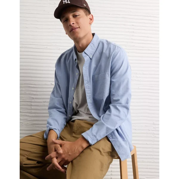 AE Everyday Relaxed Oxford Button-Up Shirt – Light Blue