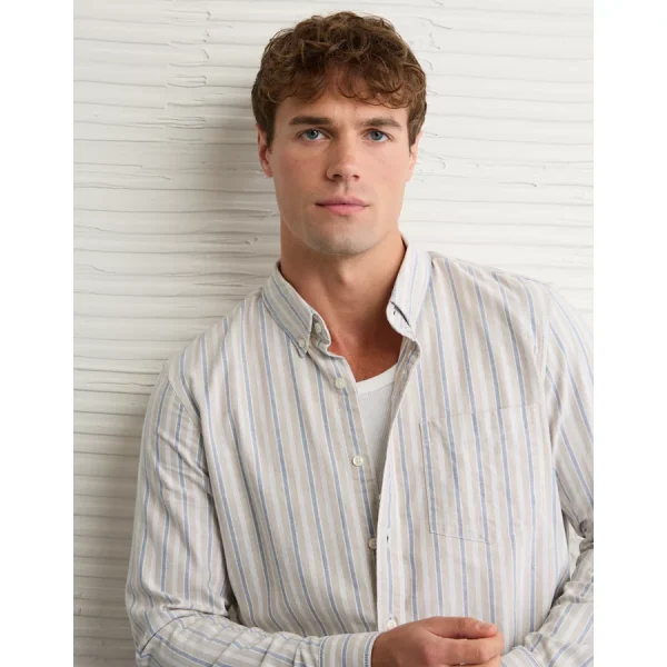 AE Everyday Oxford Striped Button-Up Shirt – Blue