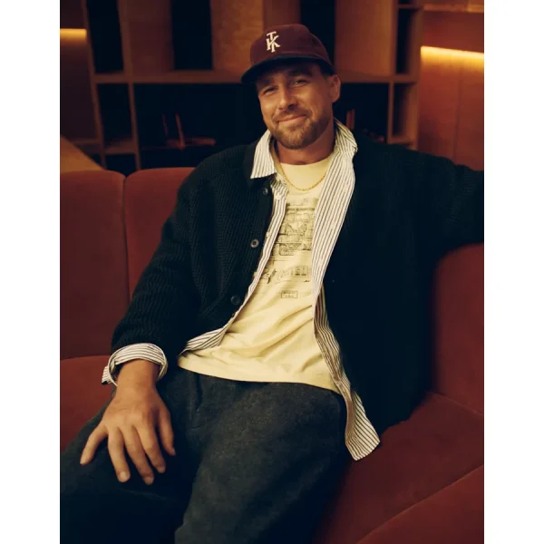 Part of our exclusive, limited-edition collab with Tru Kolors by Travis KelceChunky chenille knitShawl collarButton-up closure with AE x Tru