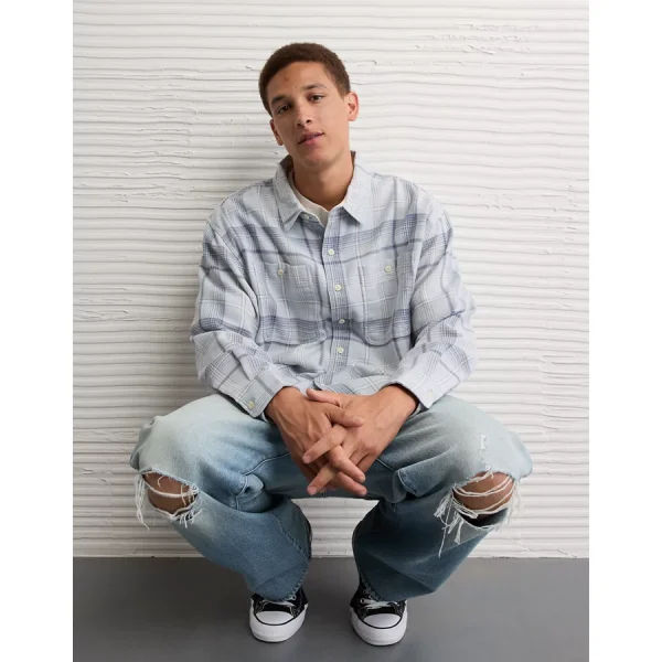 AE Textured Flannel Shirt – Blue