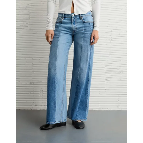 AE Stretch Patchwork Low-Rise Ultra Wide-Leg Jean – Shadow Patched Blues