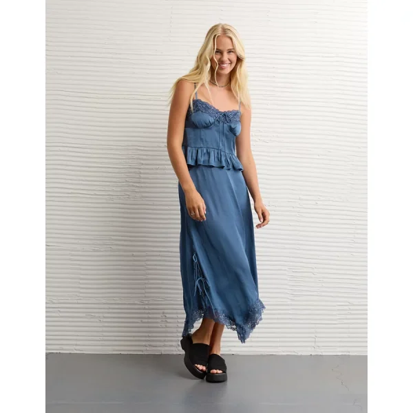AE High-Waisted Bubble Midi Skirt – Medium Wash