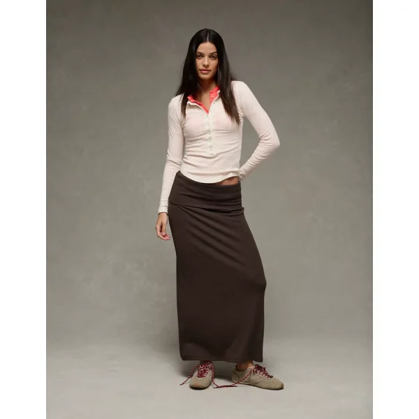 AE Cozy High-Waisted Foldover Maxi Skirt – Chocolate