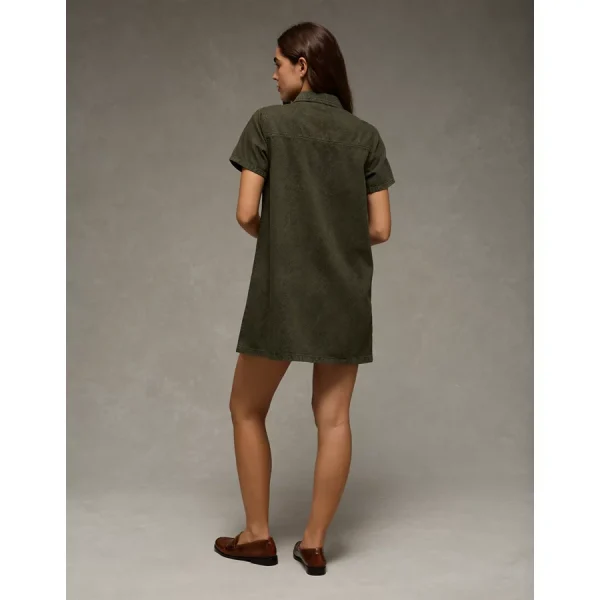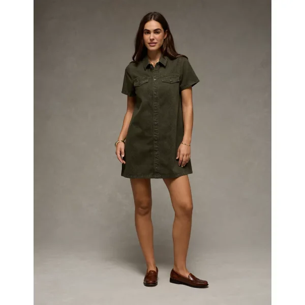 Soft denim fabricationCollared 90% Cotton, 10% Recycled CottonMachine washImported Shirt dress silhouetteMini length
