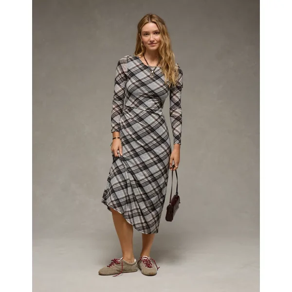 AE Asymmetrical Hem Midi Dress – Haze Grey