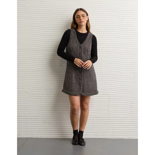 Herringbone fabricationV-neckSleeveless 64% Polyester, 14% Wool, 9% Acrylic, 7% Nylon, 6% ViscoseMachine washImported Shift silhouette that elegantly drapesMini length