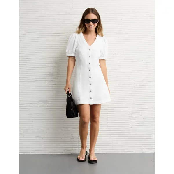 AE Puff Sleeve Denim Mini Shift Dress – White Washed
