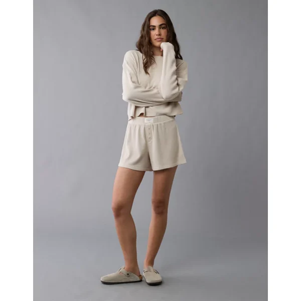 AE Luxe Plush Waffle Tee + Short Lounge Set – Cream