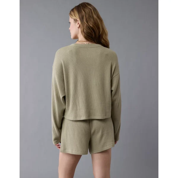 AE Luxe Plush Waffle Tee + Short Lounge Set – Washed Olive
