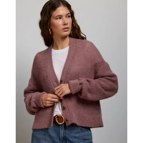 AE77 Sparkle Shaker Stitch Cardigan – Mauve