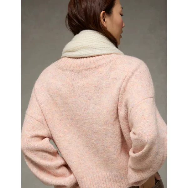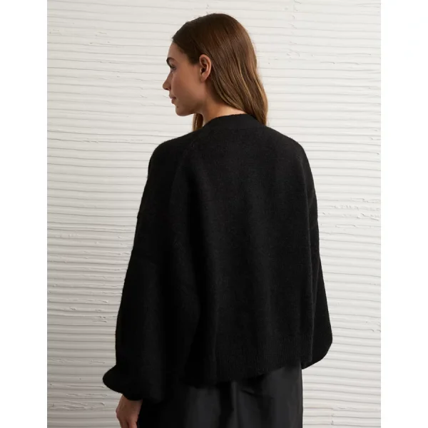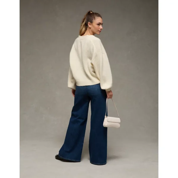 Soft sweater knitFront bow enclosureV-neckLong sleeves 88% Recycled Polyester, 7% Nylon, 5% WoolMachine washImported Oversized fit