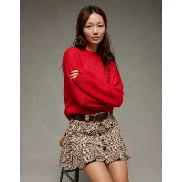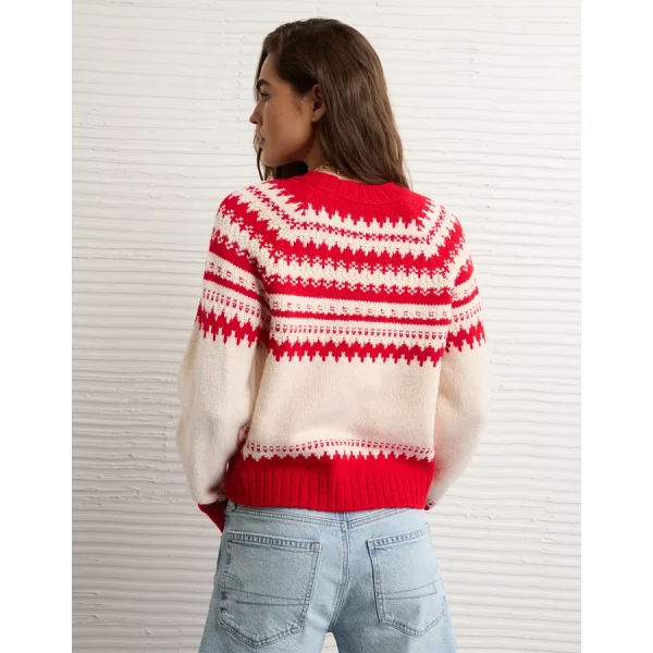 Super soft sweater knitHoliday-themed printsCrew neckLong sleeves 88% Recycled Polyester, 7% Nylon, 5% WoolMachine washImported Cropped fit & length