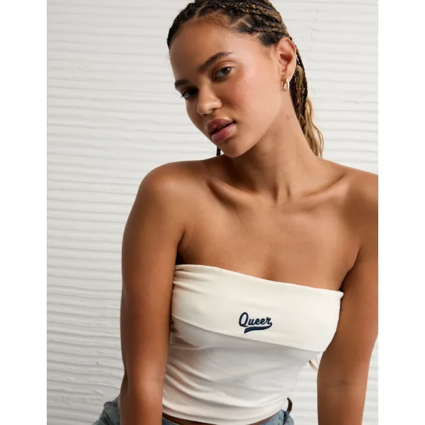 AE Ruched Peplum Tank Top With Removable Straps – Raw White