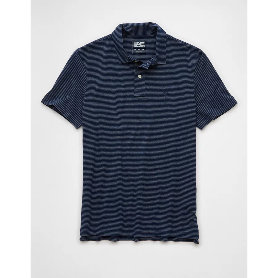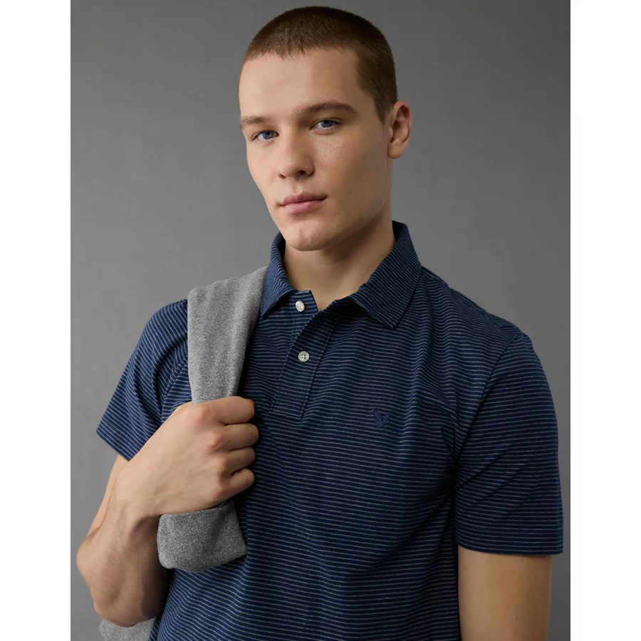 Super soft jersey with added stretchPolo collar with button placketEagle logoStripesThis is Real Good: Made with the planet in mind