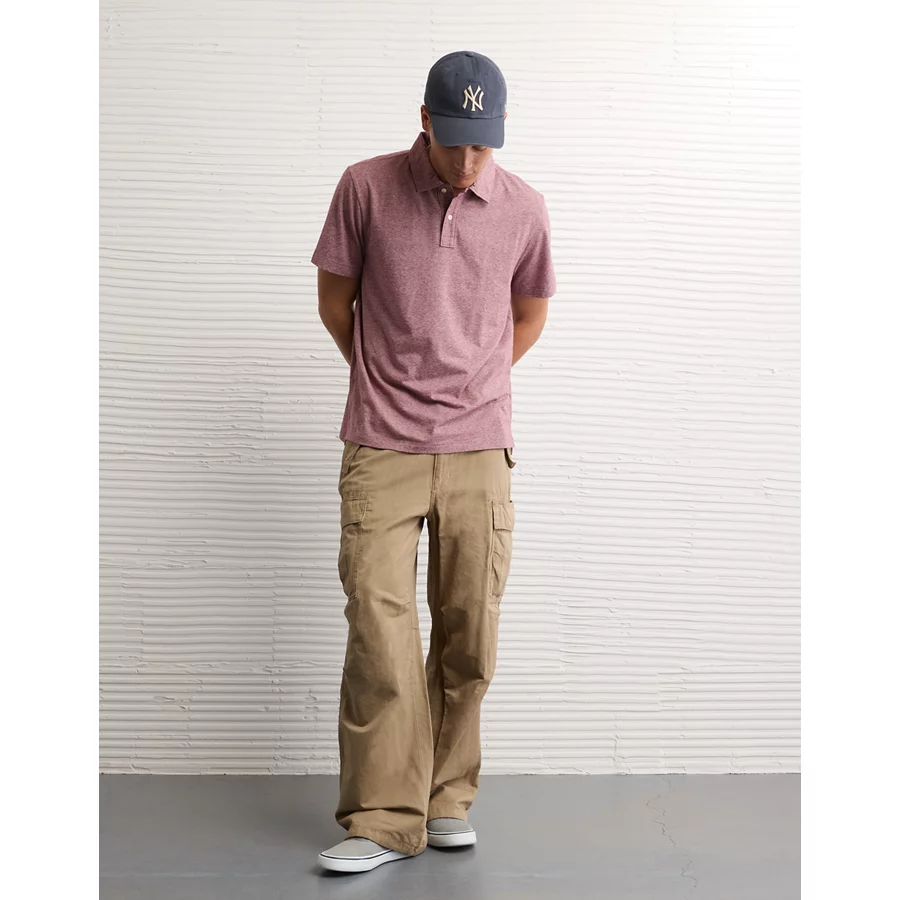 Super soft jersey with added stretchPolo collar with button placketAE 24/7 logoThis is Real Good: Made with the planet in