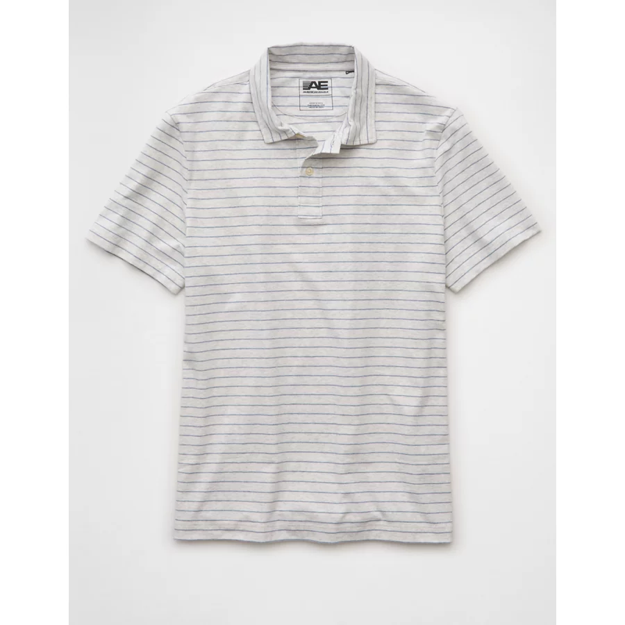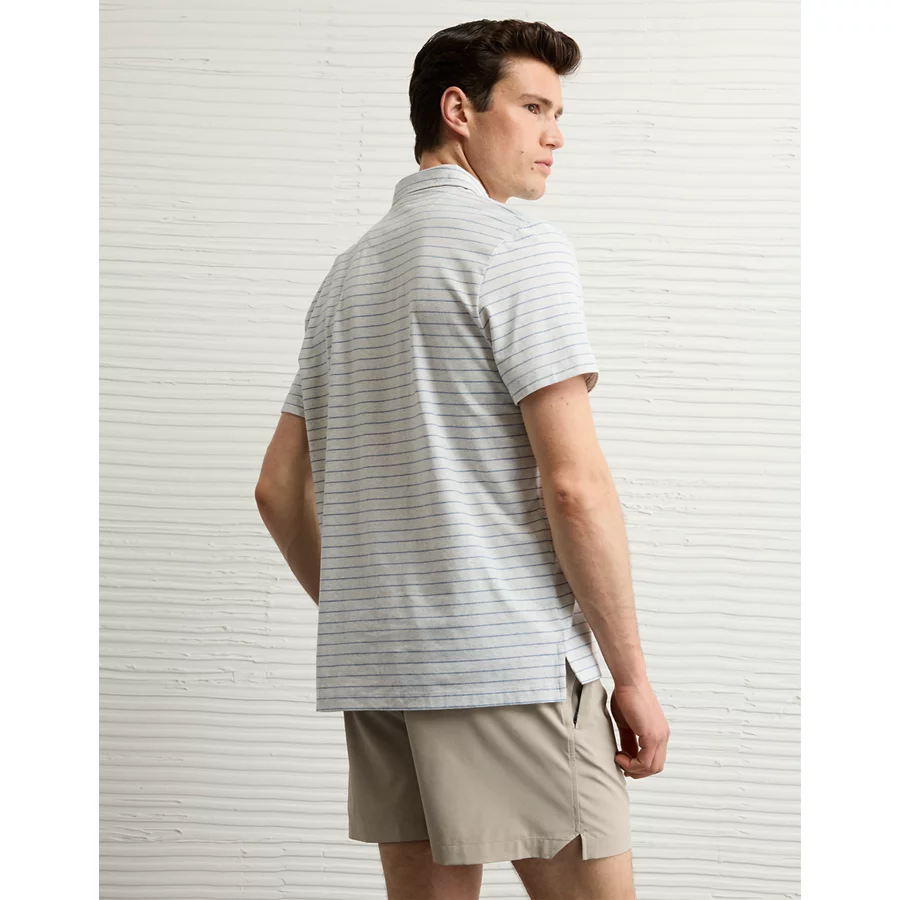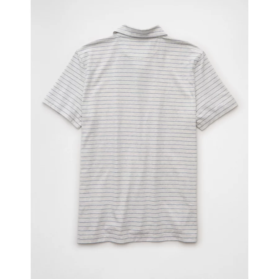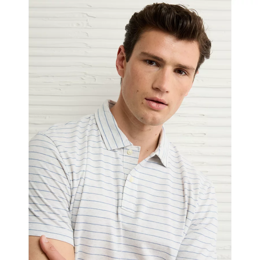 AE 24/7 Club Logo Striped Polo Shirt – Gray Heather