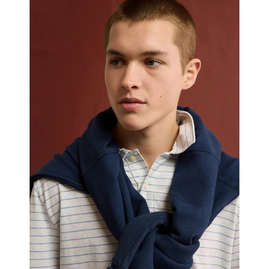 AE 24/7 Club Logo Striped Polo Shirt - Blue