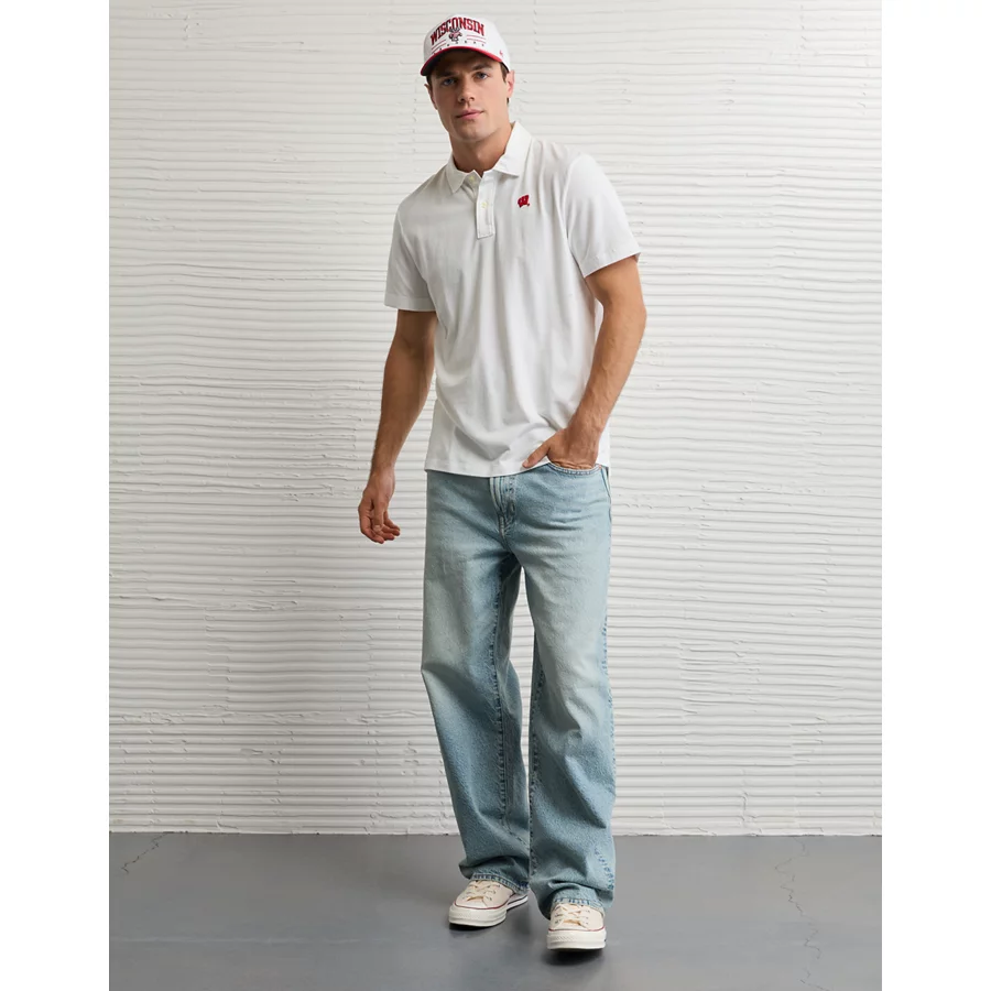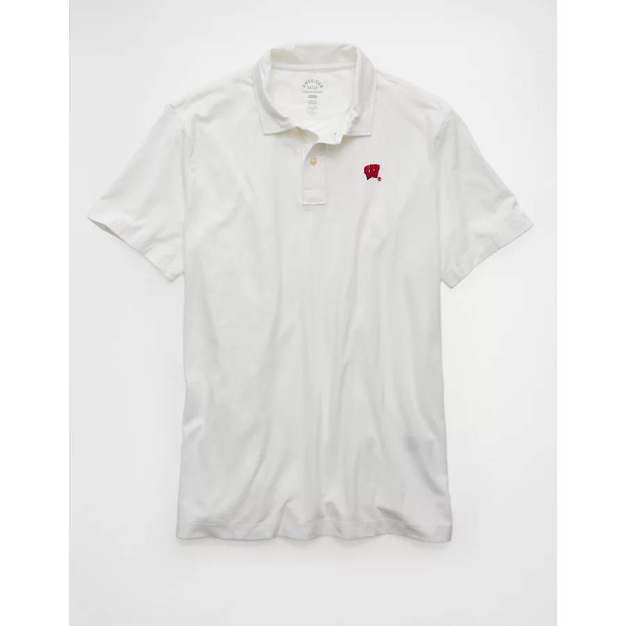 AE 24/7 Wisconsin Badgers Graphic Club Polo Shirt – White