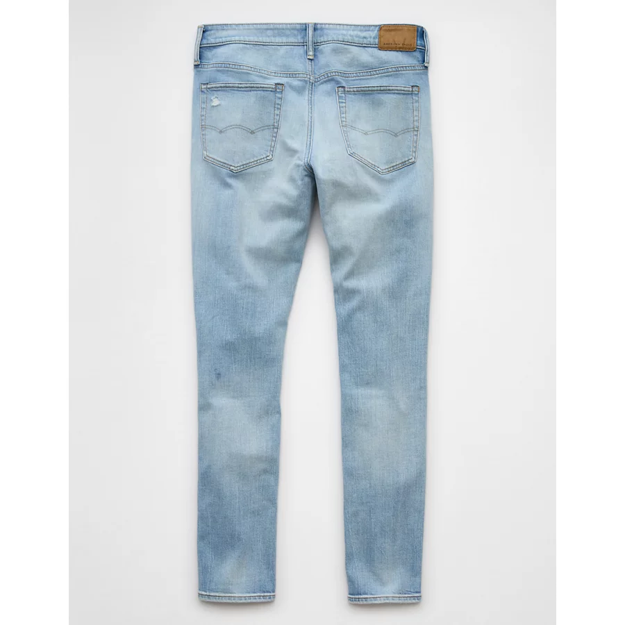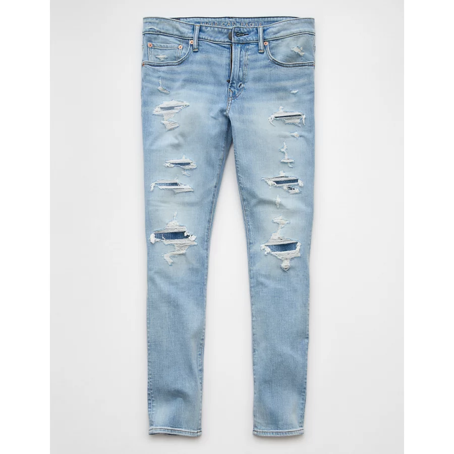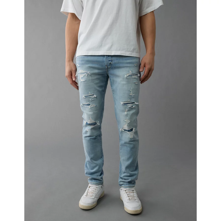 AE AirFlex+ Patched Skinny Jean – Destroyed Light Wash