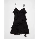 AE Asymmetrical Ruffle Maxi Slip Dress – Light Blue