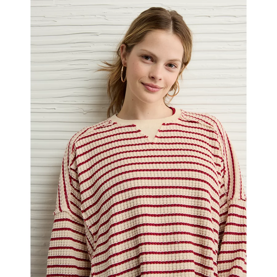 AE Big Hug Crew Neck Waffle Sweatshirt – Berry