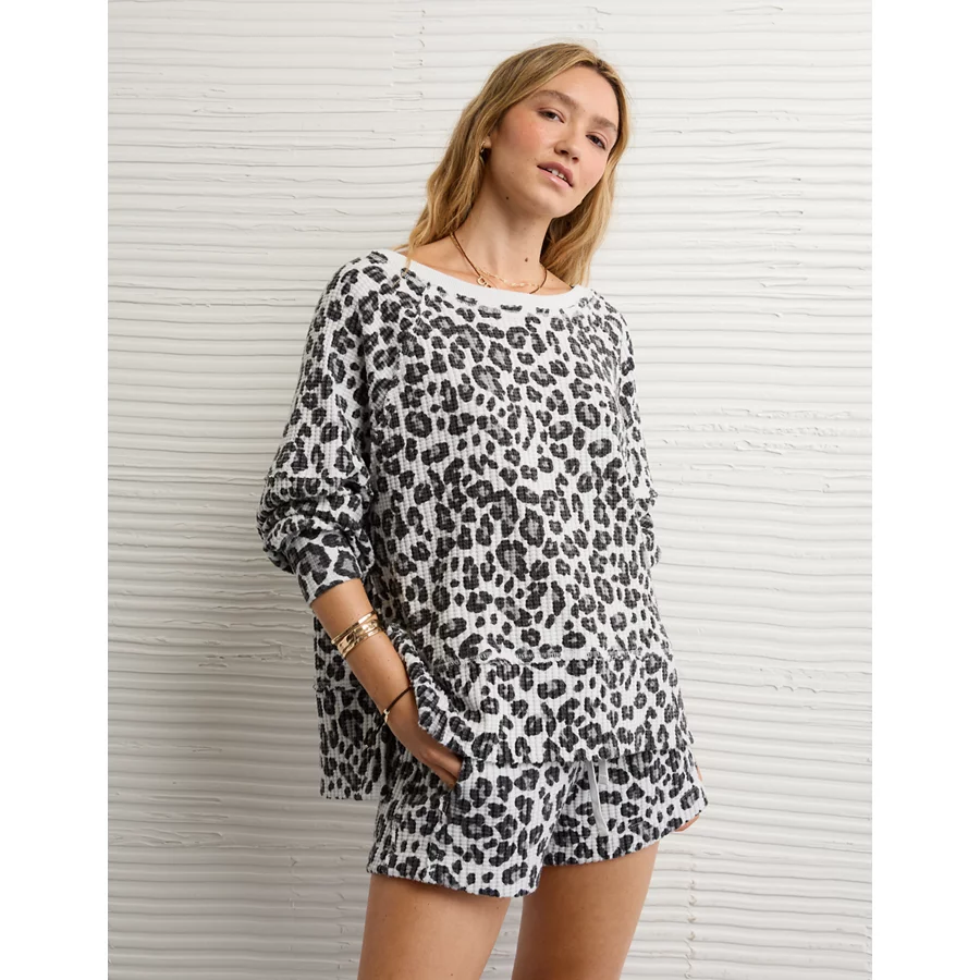 AE Big Hug Off-The-Shoulder Waffle Sweatshirt – Grey
