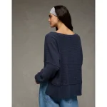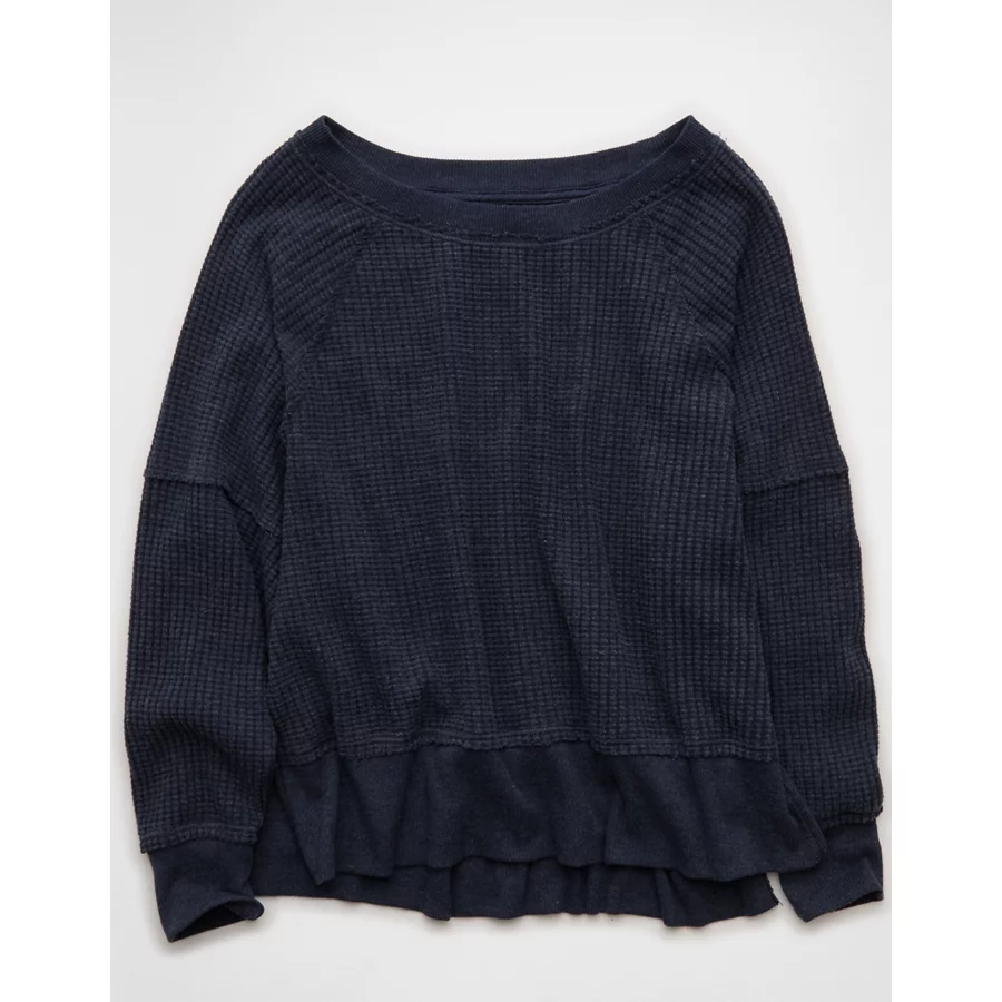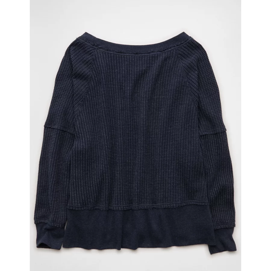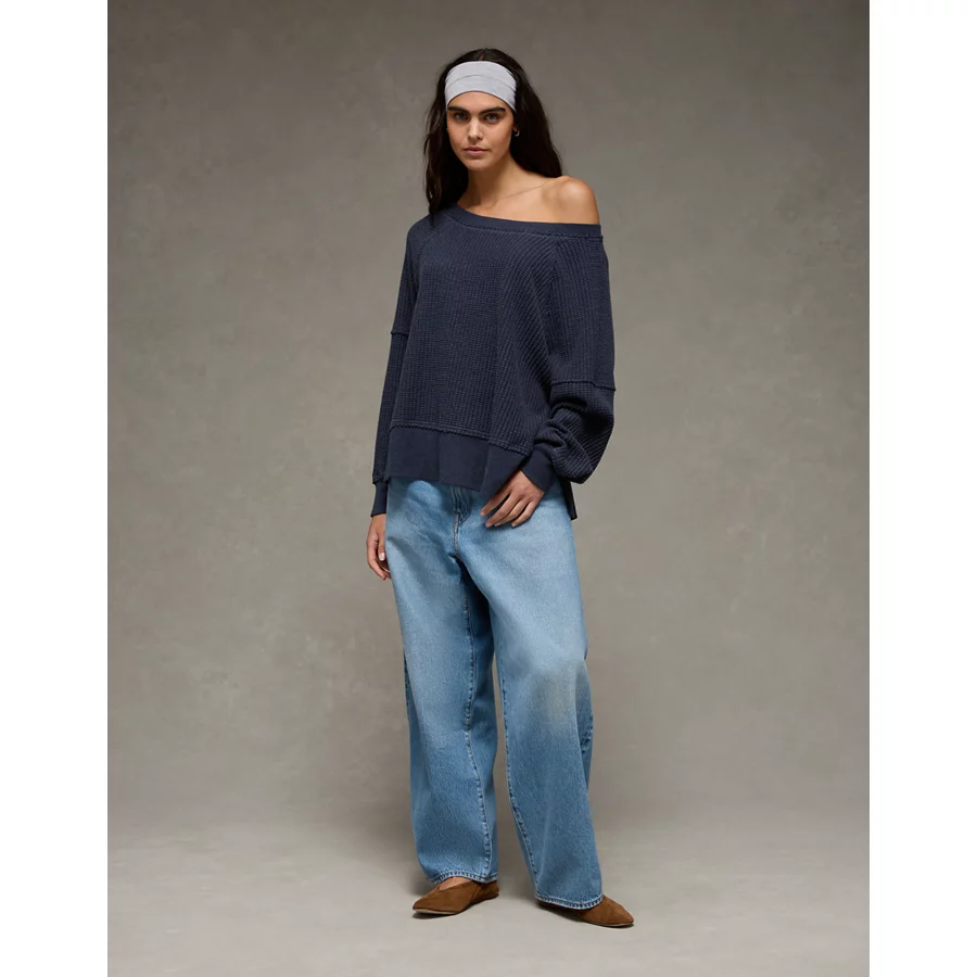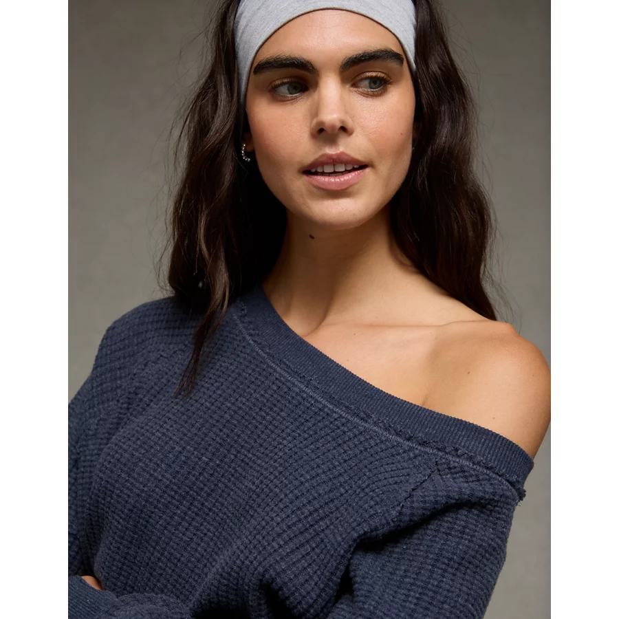 AE Big Hug Off-The-Shoulder Waffle Sweatshirt – Rich Navy